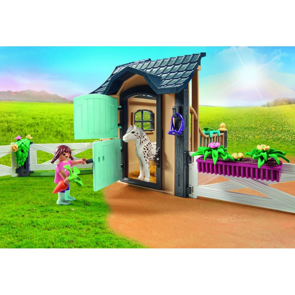Geef jouw paarden de ruimte met deze mooie PLAYMOBIL Country uitbreiding rijstal speelset. Inclusief een figuur, paard en vele accessoires. PLAYMOBIL-nr. 71240