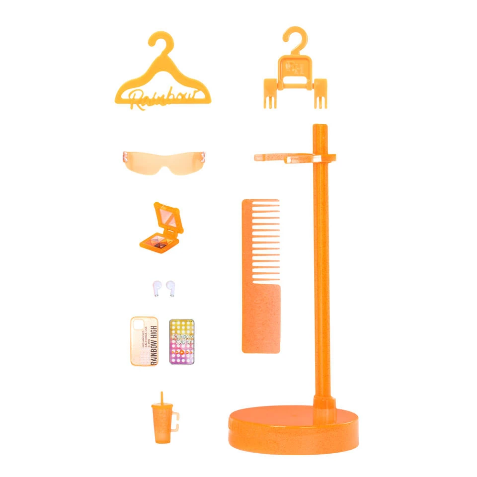 - Verzamel alle 6 de Rainbow High-modepoppen: Victoria (lichtroze), Priscilla (roze), Michelle (oranje), Olivia (groen), Kim (blauw) en Aidan (paars).